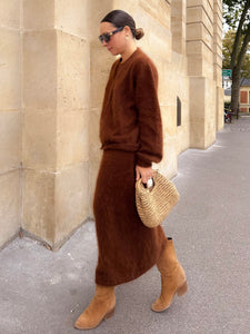 AMBRE, la jupe en angora taille élastiquée.