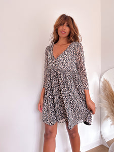 ESMEE, La nouvelle robe baby doll se décline en version léopard.